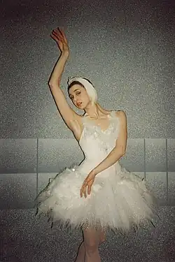 Nina Ananiashvili (born Nino Ananiashvili; Georgian: ნინო ანანიაშვილი; born March 19, 1963) is a Georgian ballerina and artistic director of the State Ballet of Georgia. She has been described by the Daily Telegraph as one of the twelve greatest ballerinas of all time,[1] and in 2002 was named Best Ballerina of the Year by the US Dance Magazine. Ananiashvili has been a prominent fixture of the Soviet, Russian and Georgian ballet scene for decades. Shortly before the fall of the Iron Curtain, in 1987 a New York Magazine critic praised her as "the best thing about the Bolshoi's Giselle whether she appeared in the title role or as the queen of the wilis."[2] In 2014, a film of her 1991 performance in Giselle with the Bolshoi ballet was released.[3]