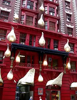 The Breslin Hotel, built in 1904, was transformed in 2009 into the Ace Hotel, but not before passing through a period as a single room occupancy (SRO) apartment building, during the low point of the neighborhood.[44] The Ace, which was redesigned by Roman & Williams[44] is a 300-room hotel whose restaurant has attracted a trendy crowd.[45] The NoMad Hotel at 28th Street and Broadway occupies the Johnston Building, a landmark 1900 French Renaissance limestone space[31][46] which features a Beaux-Arts cupola.[44] The Gershwin Hotel, on East 27th Street, and named after George Gershwin, has a unique facade, a combination of red paint and whimsical decorative touches.