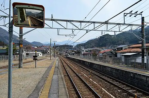 1. ^ a b c d Shinano Mainichi Shimbun (2011). Nagano Prefecture All Railway Stations, revised edition (長野県鉄道全駅 増補改訂版) (in Japanese). Shinano Mainichi Shinbun Publishing. p. 178. ISBN 9784784071647.