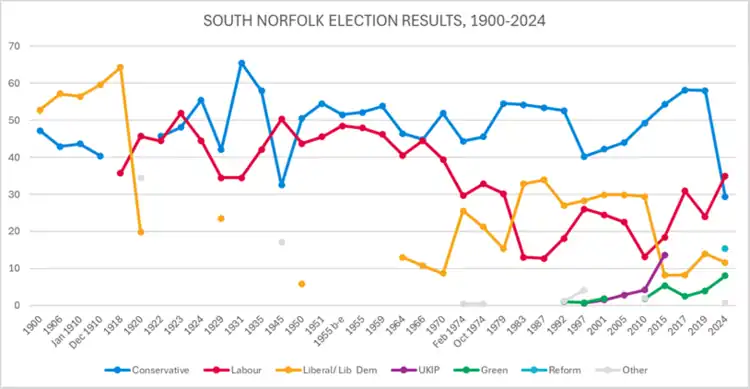 South Norfolk is a constituency[n 1] in the House of Commons of the UK Parliament represented by Ben Goldsborough, a member of the Labour Party, after winning the seat in the 2024 general election.