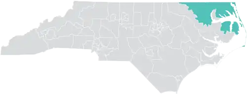 All of Northampton, Bertie, Hertford, Gates, Chowan, Perquimans, Pasquotank, Camden, Currituck, Dare, Hyde, Beaufort, Washington, and Tyrrell counties.[7]