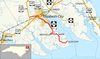North Carolina Highway 344 (NC 344) is a primary state highway in the U.S. state of North Carolina. It serves to connect Elizabeth City with communities in southern Pasquotank County.