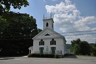 The district was listed on the National Register of Historic Places in 2005.[1] It extends along NH 12A from its junction with Ox Brook Rooad south to the Little Sugar River, just north of its junction with Depot Hill Road. Notable buildings include the 1841 Greek Revival Methodist Church, the Union Hall/Grange Hall built in 1888, and the Farwell School, a stone building erected in 1889. Most of the district's buildings are wood-frame houses, although there are two of brick. Stylistically, they are typically vernacular expressions of Federal and Greek Revival architecture, although examples of Italianate and Second Empire architecture are also to be seen. The district also includes ruinous mill remnants on the Little Sugar River.[2]