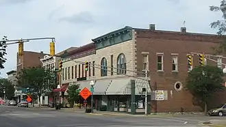 North Vernon Downtown Historic District is a national historic district located at North Vernon, Jennings County, Indiana, United States. It encompasses 80 contributing buildings and 1 contributing structure in the central business district of North Vernon. The district developed between about 1852 and 1955, and includes notable examples of Federal, Italianate, Classical Revival, and Bungalow / American Craftsman style architecture. Notable contributing buildings include the First Christian Church (c. 1890, 1940), M.T. Lindley Building (1891), N.C. Bank (c. 1910), Masonic Lodge (1899), Red Man Lodge #99 (c. 1880), Jennings County Carnegie Library (1920), Bantz Building (c. 1880), Ades Building (1913), Perry-Verbiage Building (c. 1885), Couchman Building (c. 1870, 1910), and Gottwalles Grocery (1893).[2]