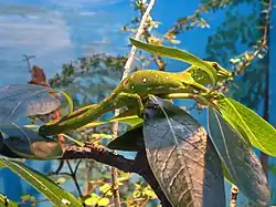 The Northland green gecko (Naultinus grayii), also known commonly as Gray's tree gecko is a species of lizard in the family Gekkonidae. The species is found only in the Northland region of New Zealand, north of Whangaroa, and is one of the rarest and most highly sought after lizards.[4]