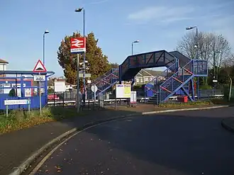 Northolt Park railway station is a National Rail station in Northolt, Greater London. It is in Cadogan Close and spans the boundary between the London Borough of Harrow and the London Borough of Ealing, with a footbridge connecting the north side (leading to Roxeth and South Harrow) to the south side (leading to Northolt and Greenford). South Harrow Tube Station on the Piccadilly line is 0.7 miles (1.1 km) by foot from Northolt Park Station. Northolt Underground station on the Central line is less than 1 mile (1.6 km) away and is accessible by the 140 and SL9 buses from Northolt Road.