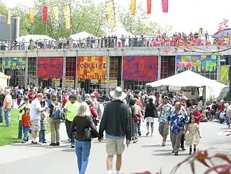 The Northwest Folklife Festival is an annual festival of ethnic, folk, and traditional art, crafts, and music that takes place over the Memorial Day weekend in Seattle, Washington at Seattle Center. It brings together an estimated 250,000 visitors, 800 volunteers, and about 6,000 musicians, dancers, and other performers. Admission is without charge thanks to community support and donations from attendees. Greeters at the entrances encourage visitors to make donations and special buttons with yearly designs are exchanged for donations.[1][2]