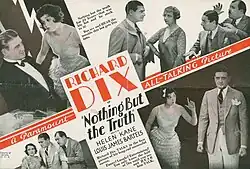 Nothing But the Truth is a 1929 American pre-Code sound comedy film starring Richard Dix, loosely adapted from the play by James Montgomery and the 1914 novel of the same title by Frederic S. Isham. The play was adapted again (more faithfully) as Nothing But the Truth (1941) starring Bob Hope and Paulette Goddard.[1]