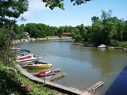 The river takes its name from the Ojibwe word "Nottawasaga". Nottawa (or Naadowe in modern orthography) means "Iroquois" and saga (zaagi in modern orthography) means "mouth of the river"; the word "Nottawasaga" (Naddowe-zaagi in modern orthography) was used by Algonquin scouts as a warning if they saw Iroquois raiding parties approaching their villages.[3]