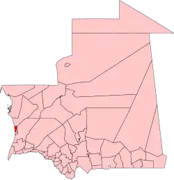 Nouakchott-Ouest (Arabic: نواكشوط الغربية) is one of the 60 electoral districts represented in the National Assembly. The constituency currently elects 7 deputies. Its boundaries correspond to those of the Mauritanian wilaya of Nouakchott-Ouest. The electoral system uses the largest remainder method and a closed-list proportional representation, with no minimum threshold.