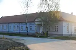 In 2020, German ethnic house was opened for public in the house of Krisztina Link Majer. The house belongs to the so-called švapska kuća type ("Swabian house"), though a bit affluent one, built before World War II. Affluence, apart from having more rooms and larger yard, also means that it has three steps at the door, as the poorer people built houses directly on the ground. Specific architectural style includes mixed brick-earth walls and steep, two-faced hipped roof which was originally made of straw, but later replaced with roof tiles. The yard is elongated, with numerous auxiliary objects, like pantry, horse stable, cart shed, barn and pigsty. Exhibited artifacts are mostly over 100 years old (horse sleds, hand powered corn husker, special clover rake, preserved animal skulls). Some are much older, like the large circle with several planks which was the roof construction of nomadic yurt, or the fifth century leather armor.[9]