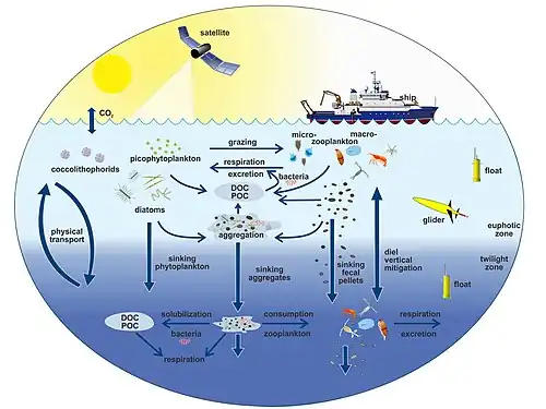 21. ^ Stemmann, L.; Boss, Emmanuel (2012). "Plankton and Particle Size and Packaging: From Determining Optical Properties to Driving the Biological Pump". Annual Review of Marine Science. 4: 263–290. Bibcode:2012ARMS....4..263S. doi:10.1146/annurev-marine-120710-100853. PMID 22457976.