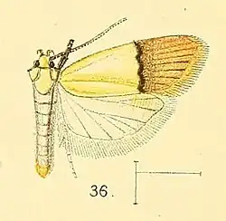 The wingspan is about 17 mm. The forewings are pale straw yellow to beyond the middle, slightly shaded with brown on the extreme costal margin near the base. Beyond the middle is a slightly-waved transverse purplish fuscous line, beyond which the remainder of the wing is entirely shaded with pale brown, or brownish ochreous. The hindwings are very pale greyish ochreous.[3]