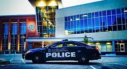 An OCPD car at the new headquarters building; the OCPD began transitioning from the Crown Victoria to the Ford Taurus as its standard patrol car starting in 2012