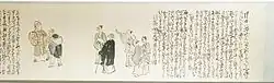 After his journey, he spent five years working and reworking the poems and prose of Oku no Hosomichi before publishing it.[9] Based on differences between draft versions of the account, Sora's diary, and the final version, it is clear that Bashō took a number of artistic liberties in the writing.[14] An example of this is that in the Senjūshu ("Selection of Tales") attributed to Saigyō, the narrator is passing through Eguchi when he is driven by a storm to seek shelter in the nearby cottage of a prostitute; this leads to an exchange of poems, after which he spends the night there. Bashō similarly includes in Oku no Hosomichi a tale of him having an exchange with prostitutes staying in the same inn, but Sora mentions nothing.[15]