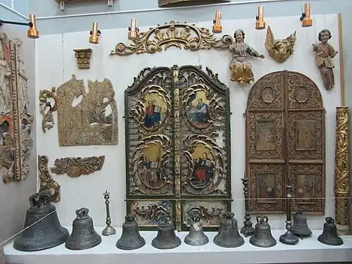 The exposition has sections of archeology (finds from excavations of cities and other archeological monuments of Belarus), art (icons of the XVI-XVIII centuries, sculpture of the XVI-XIX centuries, Slutsk belts).et al. fabrics of the 18th century, old prints and book engravings of the 16th-18th centuries, carvings, metal works (art), ethnography, weaving, folk costumes from the end of the 19th to beginning of the 20th century, ceramics, folk musical instruments, tools, household utensils, products of straw, etc.). A separate section is dedicated to the monuments of ethnography and folk art of the Chernobyl zone.