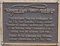 The Kangaroo Island Pioneers Association commemorated in 1986 the planting of a progeny of the adjacent original mulberry tree, by the Christian and Kleeman pioneer family descendants.