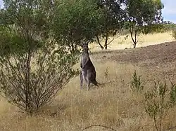 The vegetation of the park has been greatly perturbed by human activity, but remnant patches remain. The most intact area is the Hardy's Scrub section of the reserve. 160 years of livestock grazing, timber harvesting and cropping has cleared most of the reserve of native understorey species and in many areas invasive grasses are the main vegetation type. Remnant eucalypts are the most noticeable native species in the reserve. Eucalyptus microcarpa (grey box), Eucalyptus fasciculosa (pink gum), Eucalyptus porosa (mallee box), Eucalyptus camaldulensis (red gum), and Eucalyptus leucoxylon (blue gum) all occur in the reserve. The European olive (Olea europaea) is a noxious weed in South Australia and has invaded the park, although generally individuals are not as large as in older parks in the Mount Lofty Ranges like Belair National Park but will continue to be a problem unless managed. Over the last twenty years accessible areas of the gorge have been revegetated by contractors working for National Parks SA. The oldest area of revegetation in the park was conducted with tubestock, predominantly of eucalypts. Recent efforts have focused on the direct seeding method where seed of native species is ploughed into a scraped trench. Insect activity includes butterflies (Lepidoptera) and dragonflies (Anisoptera). Kangaroos are common among the open hillsides with abundant grasses.