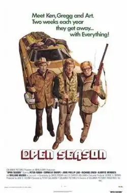 Open Season is a 1974 thriller film directed by Peter Collinson. It stars Peter Fonda, John Phillip Law, William Holden, Mabel Escaño and Cornelia Sharpe.[1] The film was shot in both Spain and England, with parts of those countries used to portray the American backwoods. The screenplay was by David Osborn and Liz Charles Williams, based on Osborn's novel.