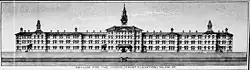 The Oregon constitution mandated that state hospitals be built in the capital city of Salem.[10] Groundbreaking began May 1, 1881, and the hospital was completed in 1883.[11] The newly built, state-funded hospital opened as the Oregon State Insane Asylum on October 23, 1883, and was constructed based on the Kirkbride Plan for a total of $184,000 (equivalent to $6,209,343 in 2024).[12] Its architecture is Italianate in style, and was designed by W.F. Boothby.[12] Dr. Simeon Josephi was appointed superintendent of the hospital from its opening until May 1887, and strived to base his treatment methods on those used by Dr. Hawthorne.[13] He was succeeded by Dr. Harry Lane, who implemented an "aggressive" vaccination program to combat smallpox outbreaks.[13] By 1891, the hospital housed a total of 478 male and 212 female patients; the growing influx of patients led to two additional wings being added onto the hospital, followed by a conversion from gas to electric lighting.[14] Additionally, the hospital infirmary was completed in 1892.[15] In 1896, the most commonly reported causes for insanity at the hospital were epilepsy, intemperance, masturbation, and religious paranoia.[16] In 1900, the hospital began to expand its campus, with two additional women's wards and four men's being added to the main building.[17] According to historical documents, the hospital had admitted a total of 5,046 patients since its opening, 1,243 of which had been "released as recovered," 1,051 "improved," while at least 1,058 had died in the hospital.[17]