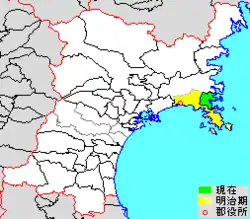 Map showing original extent of Oshika District in Miyagi Prefecture