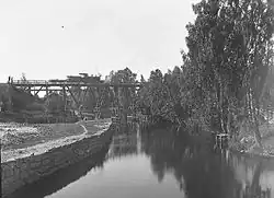 Steam locomotive passing over Sandvikselven in the 1880s