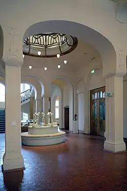 After World War II, the new director of Hagen's city art museum, Herta Hesse, oversaw the restoration of the old Folkwang building into a new home for Hagen's art museum. Although the original interior design was lost due to reconstruction and World War II bombings, the interior has been restored several times and gives a reasonable approximation of Osthaus' original museum, if not its collection. Under her direction, the museum focused on recapturing what the city had lost when the Folkwang collection was sold to Essen. The museum became a focus for exhibits of Art Nouveau and expressionist art, particularly the artists associated with Osthaus or his art colony.[1]