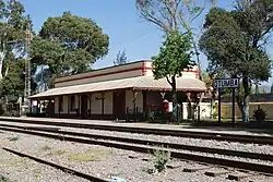 Outside of the main plaza area, but just as important, is the railroad station. Its establishment made Otumba a key communication interchange as well as important point of transfer for the shipment of pulque to Mexico City. The first rail concession through the Otumba area was granted in 1837, although it was cancelled later. In small sections a rail line was built through here and put into service in 1873, transporting passengers and cargo to and from Mexico City to points east and south. The current station was built in 1906 as part of the Mexico City-Veracruz line of the old Ferrocarril Mexicano. The station was abandoned shortly after 1995, when the railroad system was privatized. Today, the station serves as a museum for the municipality, the Museo del Ferrocarril en Otumba.[24] It contains exhibits such as a copy of the first train ticket issued in Mexico along with the reconditioned telegraph office and an archive of photographs from the late 19th and early 20th century.[12][25]