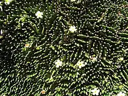 Ourisia muscosa flowers amongst leaves of Distichia muscoides