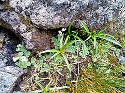 Habit and rocky alpine herbfield habitat of O. remotifolia