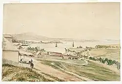 Thomas Outhwaite was formally appointed by Lord John Russell of the Colonial Office as Registrar of the Supreme Court (now the High Court of New Zealand)[3] and was the first person to hold that position (apart from Robert Fitzgerald, a planter from the West Indies who had, without the permission of the Colonial Office, just been appointed by Governor Hobson and who resigned in favour of Outhwaite[3]) which he took up on 1 January 1842.[4][5] Outhwaite also conducted a practice as a Barrister and was "the foremost Auckland lawyer".[6] From 1844 Thomas Russell was his articled clerk for seven years and later became his partner and took over his practice.[7][6] When Thomas Outhwaite retired in 1869, Sir George Arney, the second Chief Justice of New Zealand, paid tribute to Outhwaite's extraordinary firmness, patience, discretion and self-command.[8] Outhwaite was also an active Auckland property developer and investor. For example, in 1874, he purchased William Swainson's "upper paddock" next to St Stephen's Chapel, Judges Bay and this area was cut up into numerous small building allotments.[9]