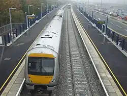 Oxford Parkway railway station is a railway station at Water Eaton, Oxfordshire, on the Oxford–Bicester line. Full regular weekday service began on 25 October 2015,[2] although the first passengers travelled the previous day on a Sunday timetable.[3]