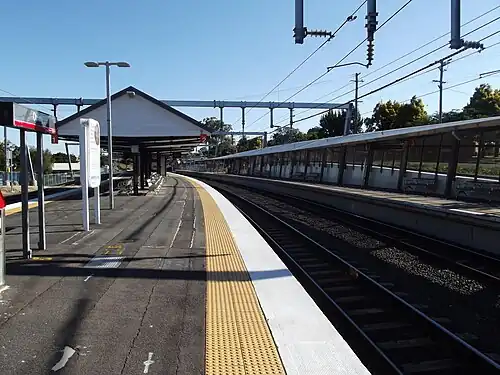In 2010, as part of the quadruplication of the Main line from Corinda to Darra to accommodate Springfield line services, a pair of tracks were built on either side of the existing two, with the western track receiving a new platform.[2]
