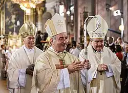 Consecration ceremony of József-Csaba Pál as Bishop, with clergy members in attendance.