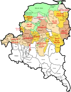 It resides within the valley of Santesteban de la Solana, under the historical district of the Merindad and Judicial District of Estella. Santesteban de la Solana was formed by the current municipalities of Arróniz, Barbarin, Igúzquiza, Luquin, and Villamayor de Monjardín.[13]