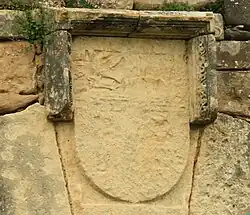 The palace of Artázcoz still stands with two sections, several coats of arms, a tower, and houses with arched entrances.[92] The palace of Artázcoz was officially listed as a "cabo de armería" in the Kingdom's registry, as confirmed by its owner Carlos de Elío y Arbizu in 1679. He and his son-in-law Carlos Velázquez de Medrano sought an exemption for the palace in 1702. By 1723, it belonged to Luis Velázquez de Medrano y Elío, and by 1766, it was owned by Lord Francisco Roque Velázquez de Medrano.[92]