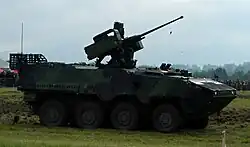 The Sabrah light tank wheeled version is a new variant developed and offered by Elbit Systems for the Philippine Army's Light Tank Acquisition Project.[43] It uses the Pandur II 8×8 platform fitted with a new turret armed with a 105 mm gun developed by Elbit in partnership with Denel Land Systems.[44] The Notice of Award (NOA) for the project was issued to Elbit Systems Land by the Department of National Defense in September 2020.[45]
