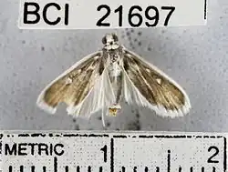 2. ^ Nuss, Matthias; Landry, Bernard; Mally, Richard; Vegliante, Francesca; Tränkner, Andreas; Bauer, Franziska; Hayden, James; Segerer, Andreas; Schouten, Rob; Li, Houhun; Trofimova, Tatiana; Solis, M. Alma; De Prins, Jurate & Speidel, Wolfgang (2003–2017). "GlobIZ search". Global Information System on Pyraloidea. Retrieved June 6, 2018.