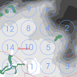 Layout of the "Parlick Grid Challenge" for gliders. Parlick is bottom right, between grid locations 1 and 3.
