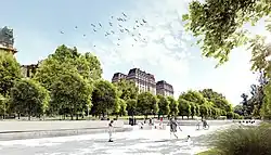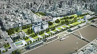 Paseo del Bajo included a park, named "Parque del Bajo", located between Belgrano and Corrientes avenues (north-south) and Paseo Colón and Huergo avenues (west-east), with an extension of 102,000 m2.[6]