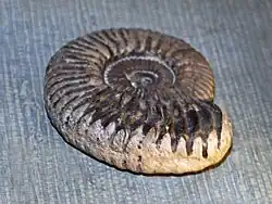 | Fossil shell of Peltoceras arduennense from Calvados (France), on display at Galerie de paléontologie et d'anatomie comparée in Paris | |