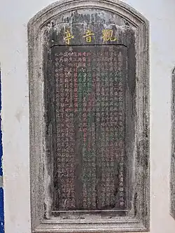 In 1764, Tai Fu (戴福), the acting commander (Vice General) of the Penghu Naval Garrison, played a leading role in the renovation of Guanyin Temple. The couplet hanging on both sides of the altar in the temple's eastern wing, bearing an inscription written in Chinese calligraphy, was installed by Tai Fu during the 29th year of the Qianlong reign (1764). This pair of couplets is recognized as the oldest surviving artifact in Guanyin Temple.[4][3]: 31