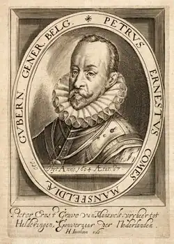 Peter Ernst I von Mansfeld-Vorderort (20 July 1517 – 25 May 1604) was a Spanish Imperial army commander of German origin and Governor of the Spanish Netherlands from 1592 to 1594.