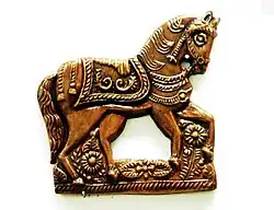 In Europe, gingerbreads were sold in special shops and at seasonal markets that sold sweets and gingerbread shaped as hearts, stars, soldiers, babies, riders, trumpets, swords, pistols and animals.[1] Gingerbread was especially sold outside churches on Sundays. Religious gingerbread reliefs were purchased for the particular religious events, such as Christmas and Easter. The decorated gingerbreads were given as presents to adults and children, or given as a love token, and bought particularly for weddings, where gingerbreads were distributed to the wedding guests.[1] A gingerbread relief of the patron saint was frequently given as a gift on a person's name day, the day of the saint associated with his or her given name.[1] It was the custom to bake biscuits and paint them as window decorations. The most intricate gingerbreads were also embellished with iced patterns, often using colours, and also gilded with gold leaf.[10] Gingerbread was also worn as a talisman in battle or as protection against evil spirits.[4]