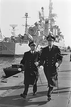 Vice-admiral de Gaulle exiting the Colbert in Amsterdam, 1976