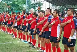 The Philippines national rugby union team, nicknamed the "Volcanoes", represents the Philippines in international rugby union. The Philippines have been playing in the Asia Rugby Championship since 2006 when the team was first created. In 2012 they won the Division I championship and were promoted to the top 5 for the 2013 tournament where they earned 4th place and again in the 2014 tournament. The Philippines have yet to make their debut at the Rugby World Cup.