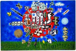 Martin was born in 1927 in East Anglia to an Irish family. He was the son of a bank director. He attended Felsted Public school for ten years, between 1938 and 1948. He served three years in the British Royal Navy. In the summer of 1948, he entered the Third Order of Saint Francis brotherhood as a lay brother. He left the order because of differences in philosophy and devoted himself to painting. He then lived in London. He was an artist in residence at the Abbey Arts Centre (London) 1949–1950 where he met Irish Australian fellow artist Helen Marshall (1918–1996) and Stacha Halpern.[1] Phillip Martin... defined by the well-known French critic Alain Jouffroy: “the Gandhi of modern painting”. A globetrotting, hippie artist who painted "spiritual" paintings full of symbols and effigies with decorations to evoke sacred vestments or decorations of oriental temples. Martin had started painting in London in 1948 also encouraged by his painter friend Alan Davie, a little older than him. He later began with his Irish wife Helen Marshall to travel and paint throughout Europe.[1]