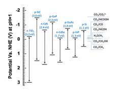 - ^ Kumar, Bhupendra; Smieja, Jonathan M.; Kubiak, Clifford P. (2010). "Photoreduction of CO2 on p-type Silicon Using Re(bipy-But)(CO)3Cl: Photovoltages Exceeding 600 mV for the Selective Reduction of CO2 to CO". J. Phys. Chem. C. 114 (33): 14220-14223. doi:10.1021/jp105171b.