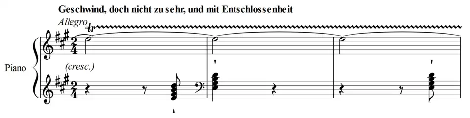 4. Geschwind, doch nicht zu sehr, und mit Entschlossenheit (Swiftly, but not overly, and with determination). Allegro