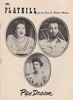 The front cover of Pipe Dream's playbill shows Traubel, Johnson, and Tyler in character.